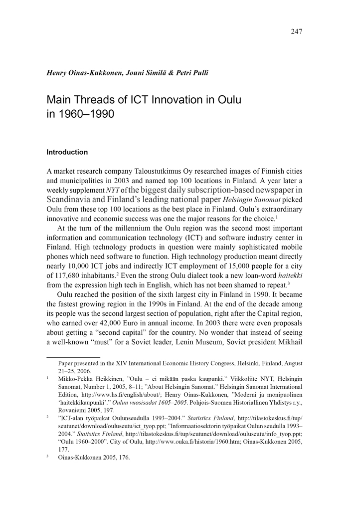 Main Threads of ICT Innovation in Oulu in 1960 - 1990
